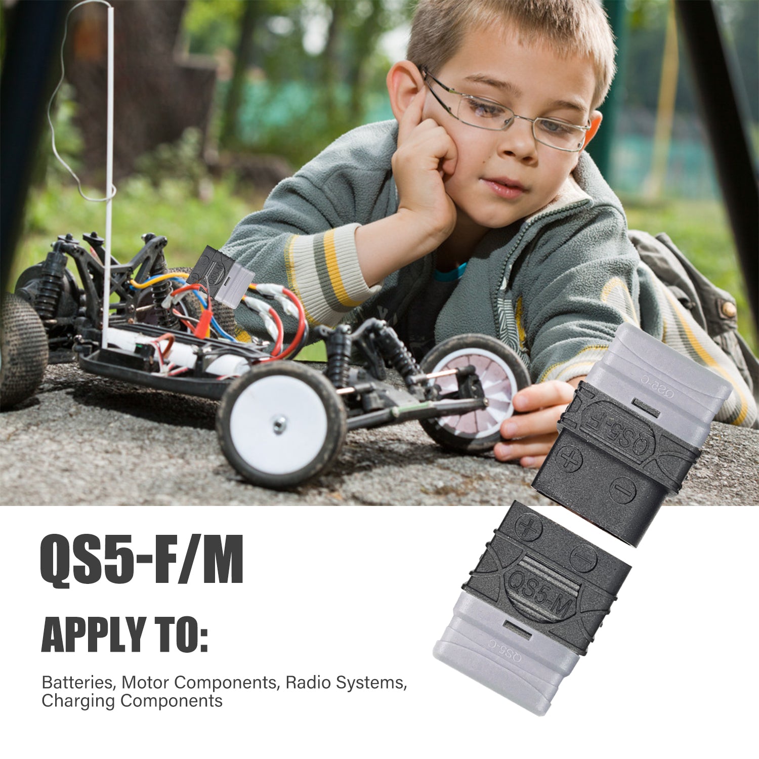 The QS5 connector is a compact, high-current plug designed for lightweight power systems. Engineered with gold-plated copper terminals and a flame-retardant nylon housing, it supports continuous current up to 50A and accommodates 10–12AWG wires.